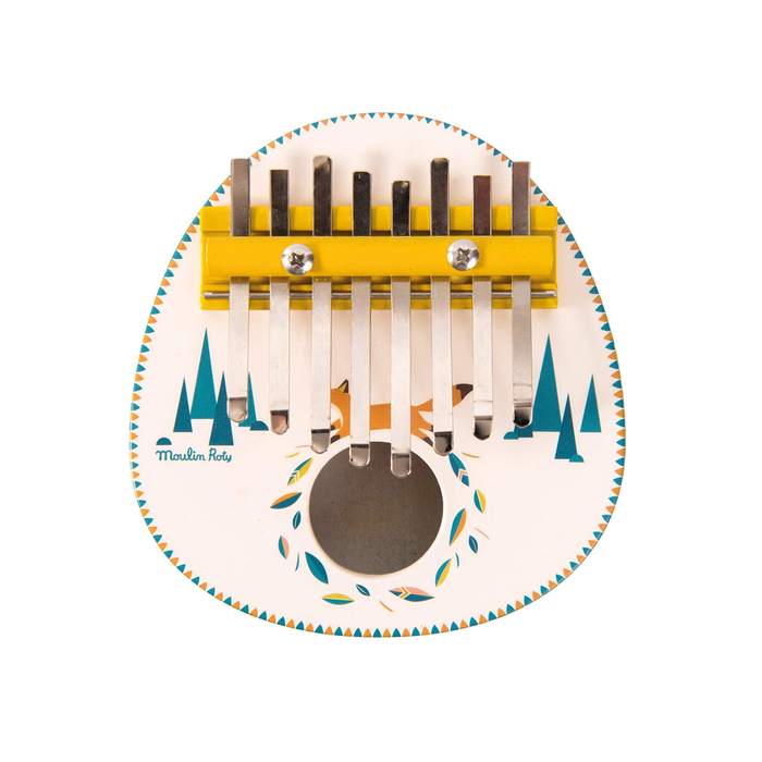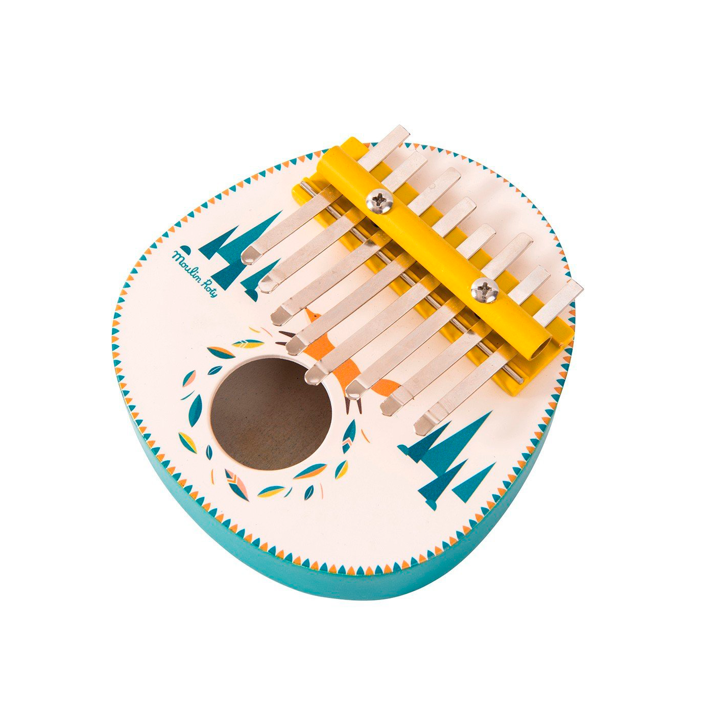 Kalimba de madera con ilustración de "El viaje de Olga" de Moulin Roty.