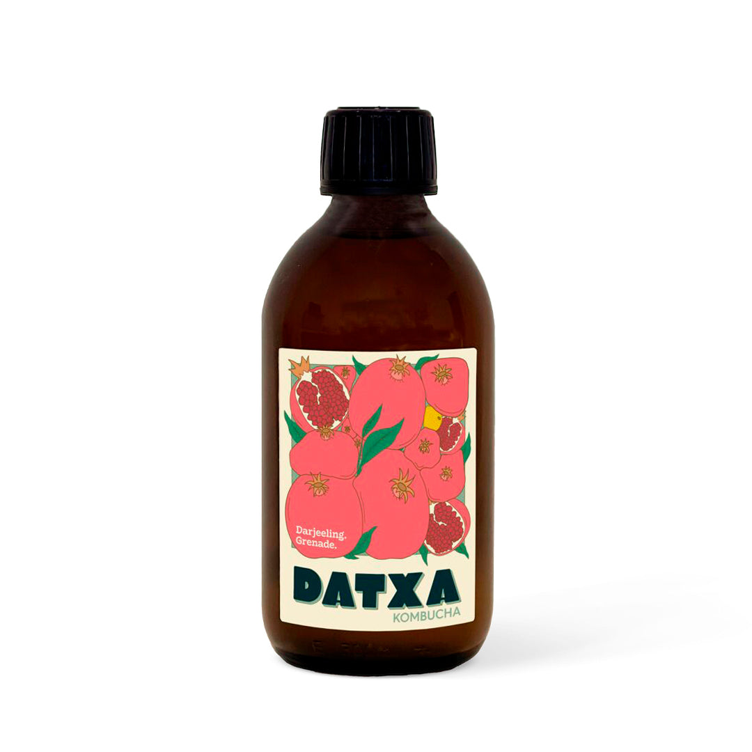 Ingredientes: Agua filtrada, cultivo simbiótico de kombucha, té Darjeeling F.T.G.F.O.P.1*, azúcar de caña rubia sin refinar*, jugo de granada*, jugo de limón*.