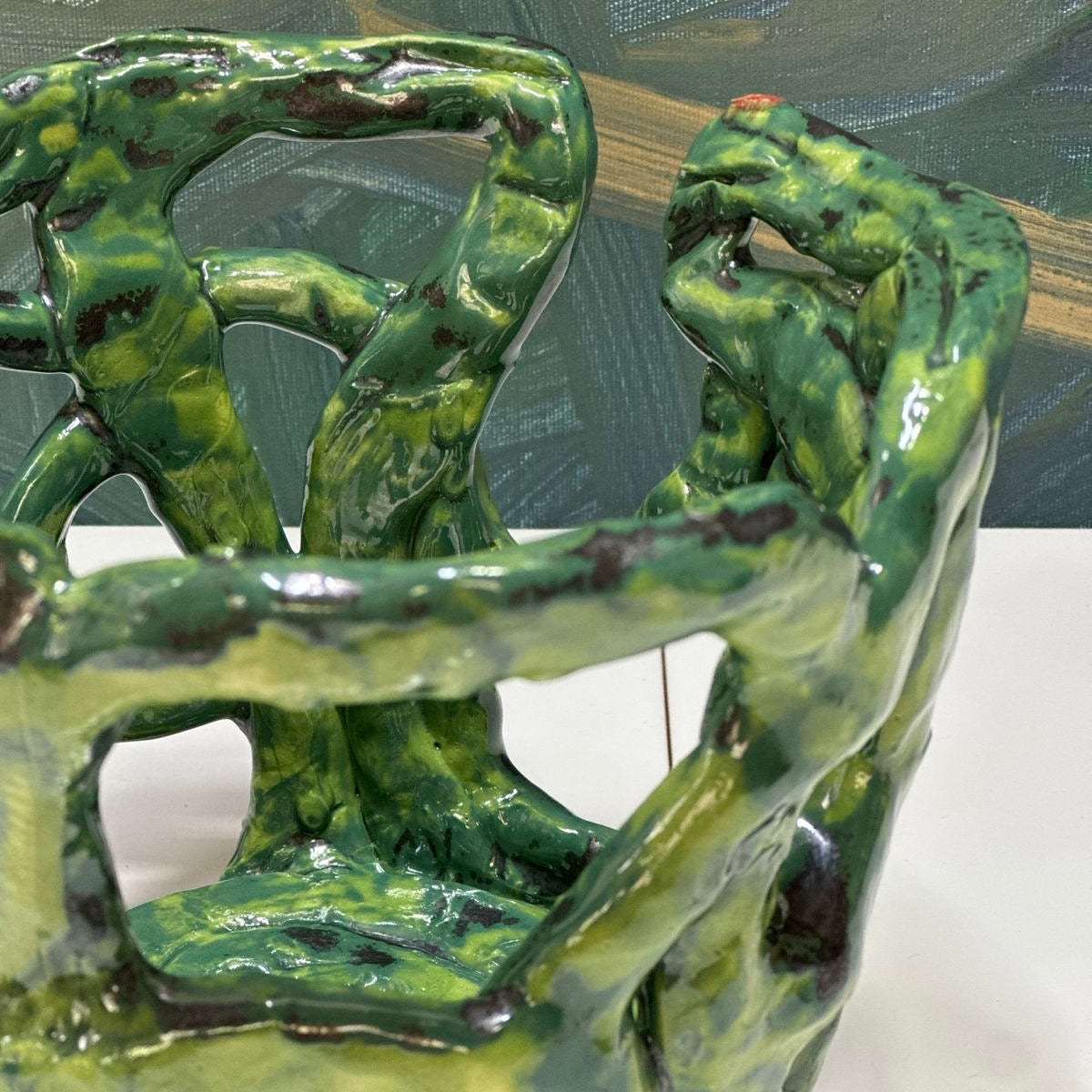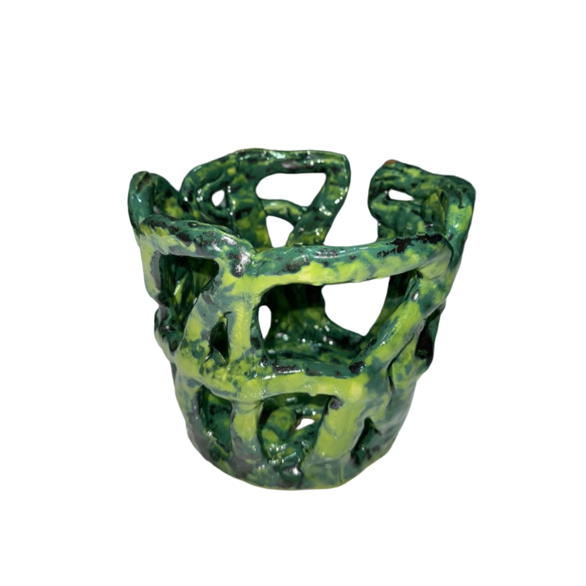 Swaney alude a la naturaleza sensual de la vida vegetal y quizá a la necesidad de vestirlas en consecuencia, con formas de encaje que se retuercen y giran en torno a sus sistemas radiculares. Ideales para quienes aprecian la intersección de las bellas artes, el diseño y el mundo natural, estas macetas son a la vez funcionales y coleccionables, y están firmadas y fechadas. Cada pieza única provocará alegría y conversación en cualquier hogar o espacio.