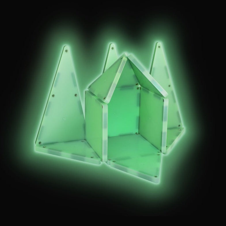 Ahora, las creaciones Magna-Tiles® de tus hijos pueden cobrar vida, ¡en la oscuridad! El juego de 16 piezas Magna-Tiles® Glow in the Dark (fluorescente) es un gran elemento para añadir a la colección y permitirá a tus hijos construir creaciones únicas. Cuando acaben la construcción, ¡apaga las luces y observa el resplandor!
