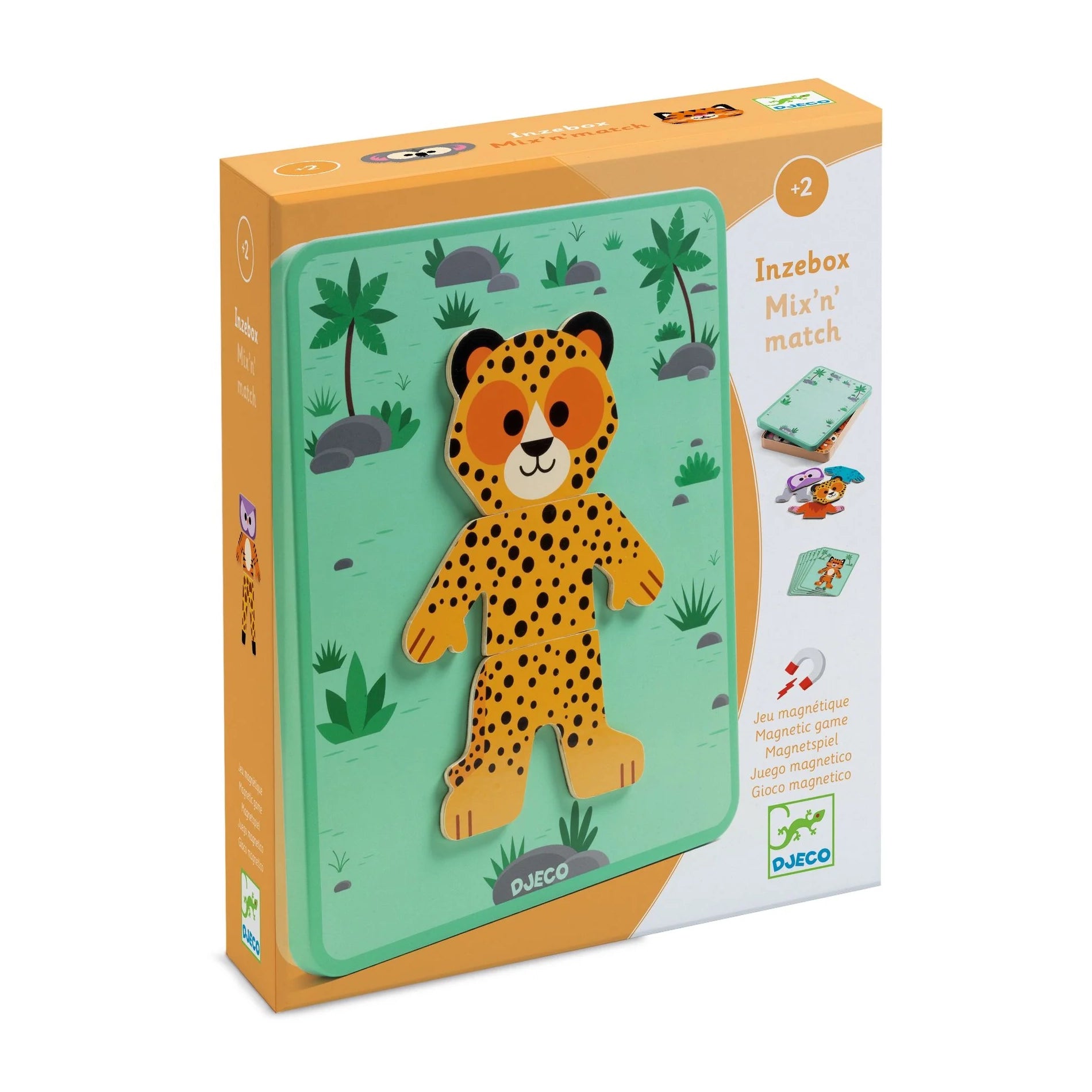 Con Inzebox, niños y niñas juegan con imanes de madera sobre una fina caja metálica. Reproducen los 8 animales que aparecen en las tarjetas eligiendo el lado correcto de la caja y creando divertidas combinaciones.