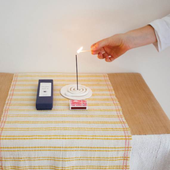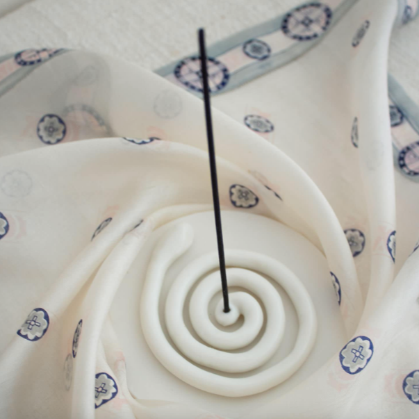 El set incluye una caja de 48 varillas de incienso + una base de cerámica blanca + el diseño de la serpiente y una caja de cerillas japonesas.