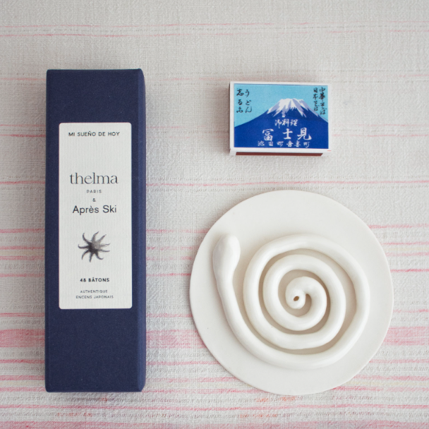Mi sueño de hoy es una colaboración entre Thelma Paris y Après Ski con un diseño de base de incienso con una serpiente diseñada por Après Ski y una caja de varillas de incienso japonés.