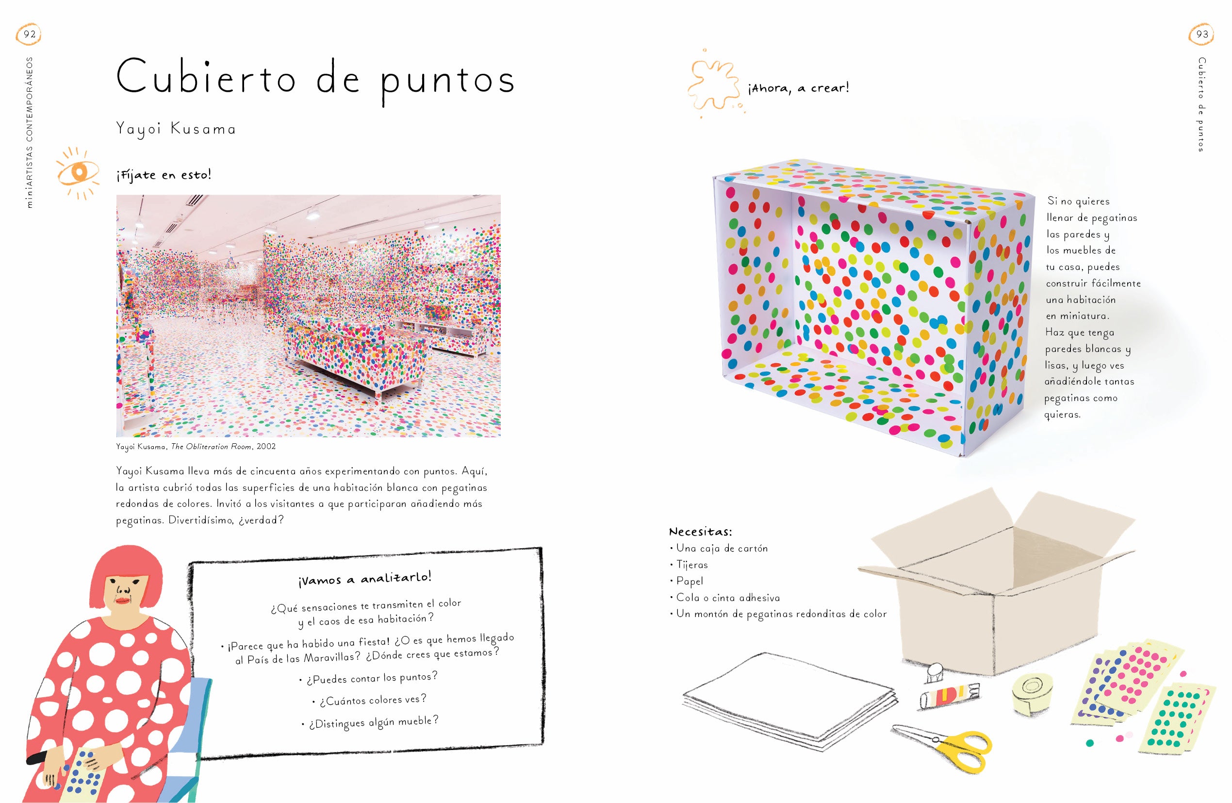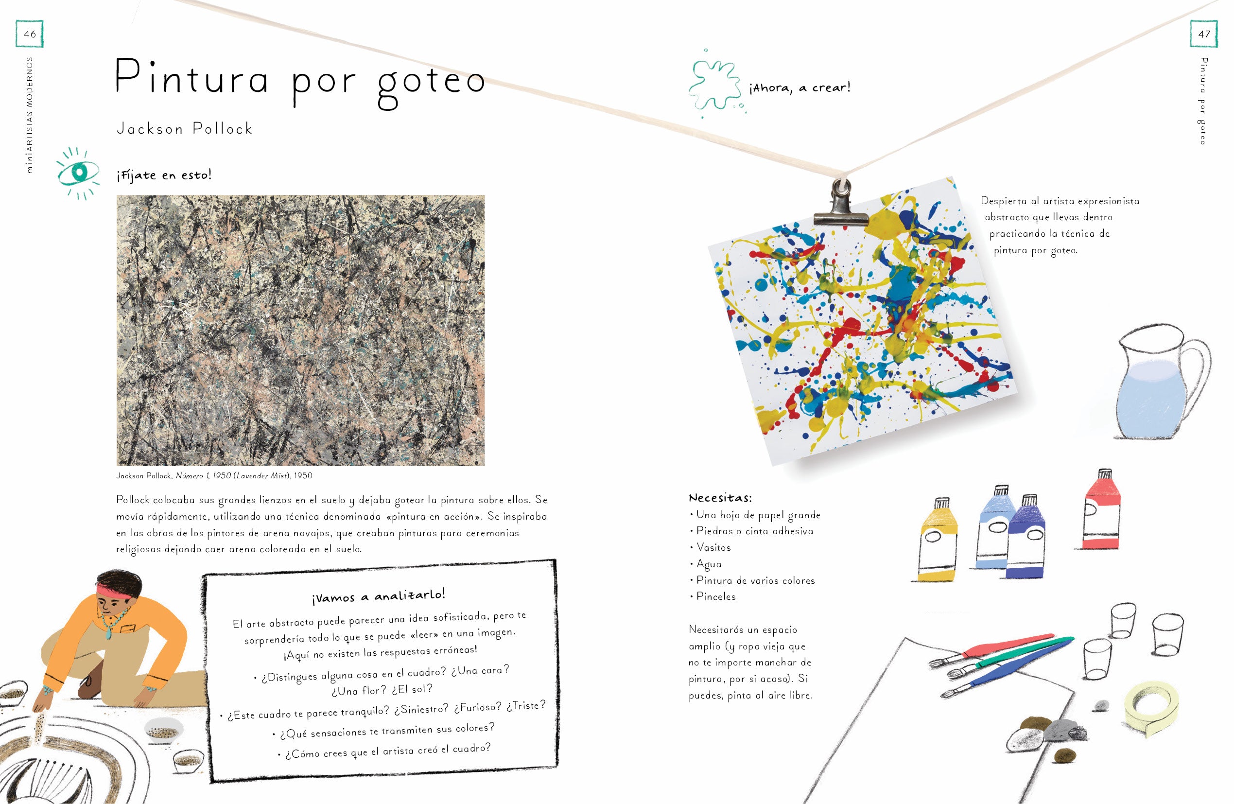 Estos proyectos están diseñados para que las niñas y los niños se interesen por las obras de arte y descubran la gran variedad de elementos, formas y espacios que existen para poder crear. Conocerán la técnica del goteo con Jackson Pollock o tallarán esculturas de jabón con Barbara Hepworth… También viajarán en el tiempo y explorarán el arte de diferentes épocas, desde pinturas rupestres o mosaicos aztecas hasta vidrieras medievales o retratos de arte urbano inspirados en Jean-Michel Basquiat.¡Disfruta de este viaje lleno de ideas originales e increíbles y crea miniobras de arte!