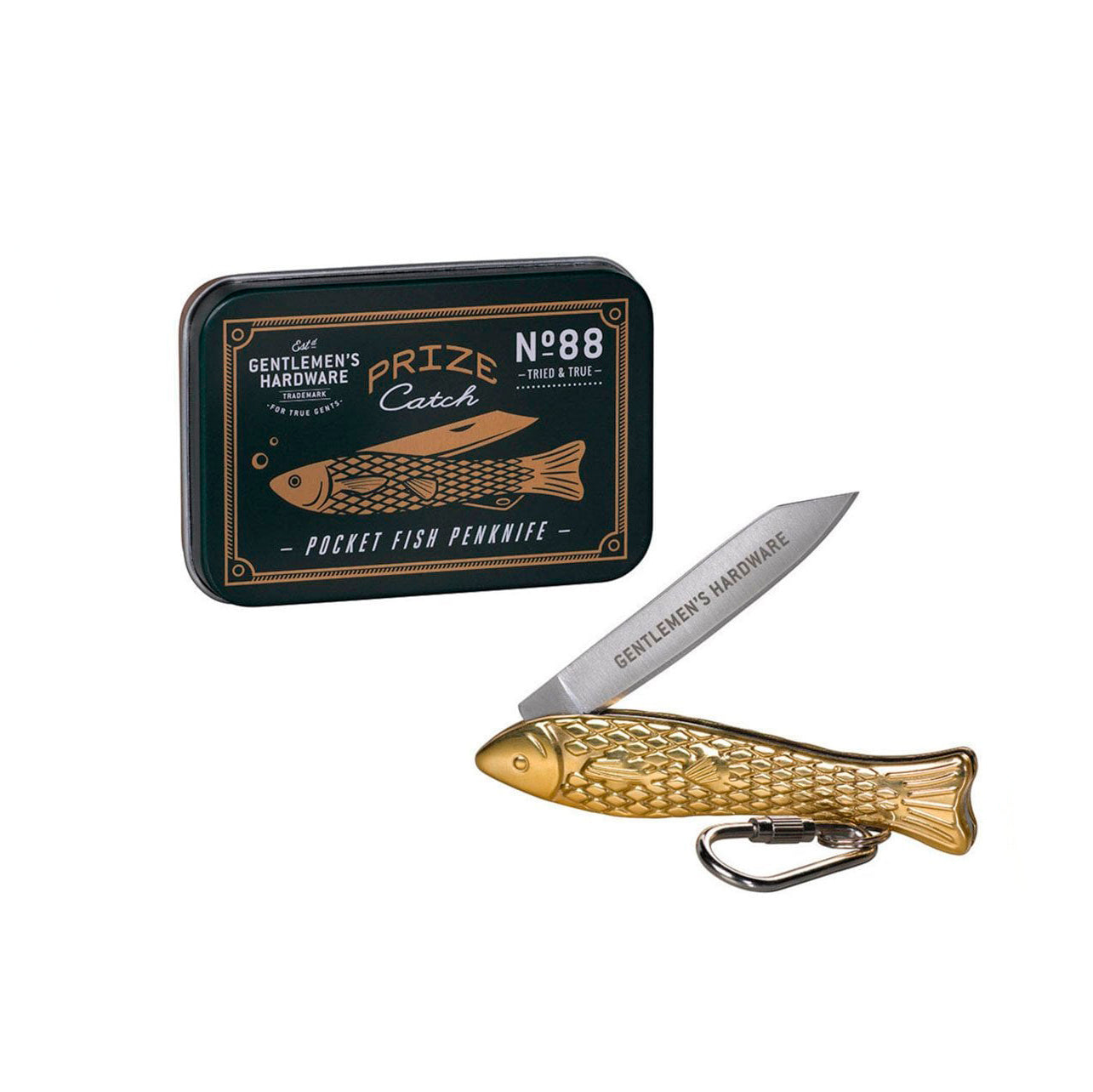 Esta navaja de bolsillo de Gentlemen's Hardware tiene un diseño único en forma de pez y lleva la marca grabada en la hoja. Viene en una elegante lata y es el gran regalo para tu amigo más aventurero.