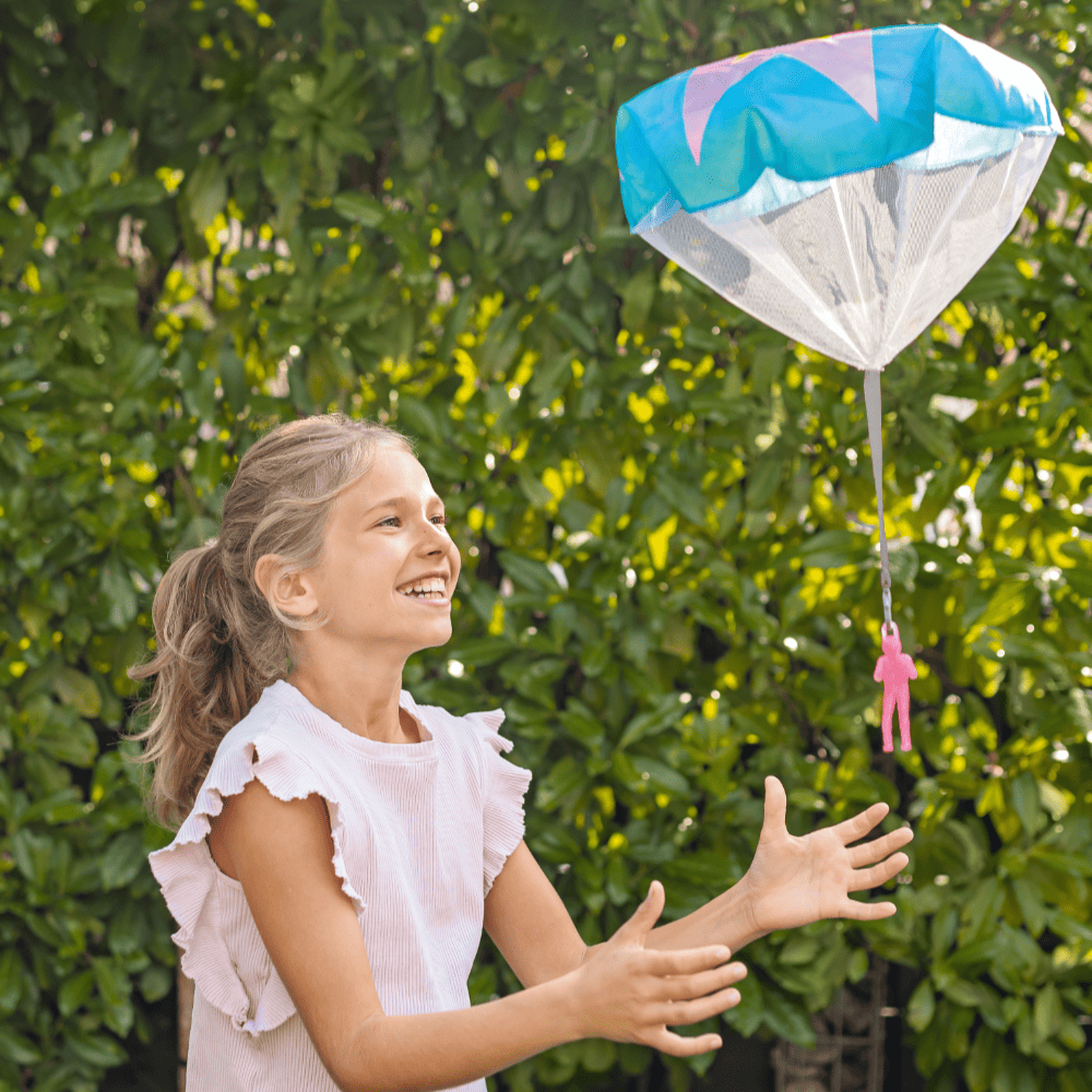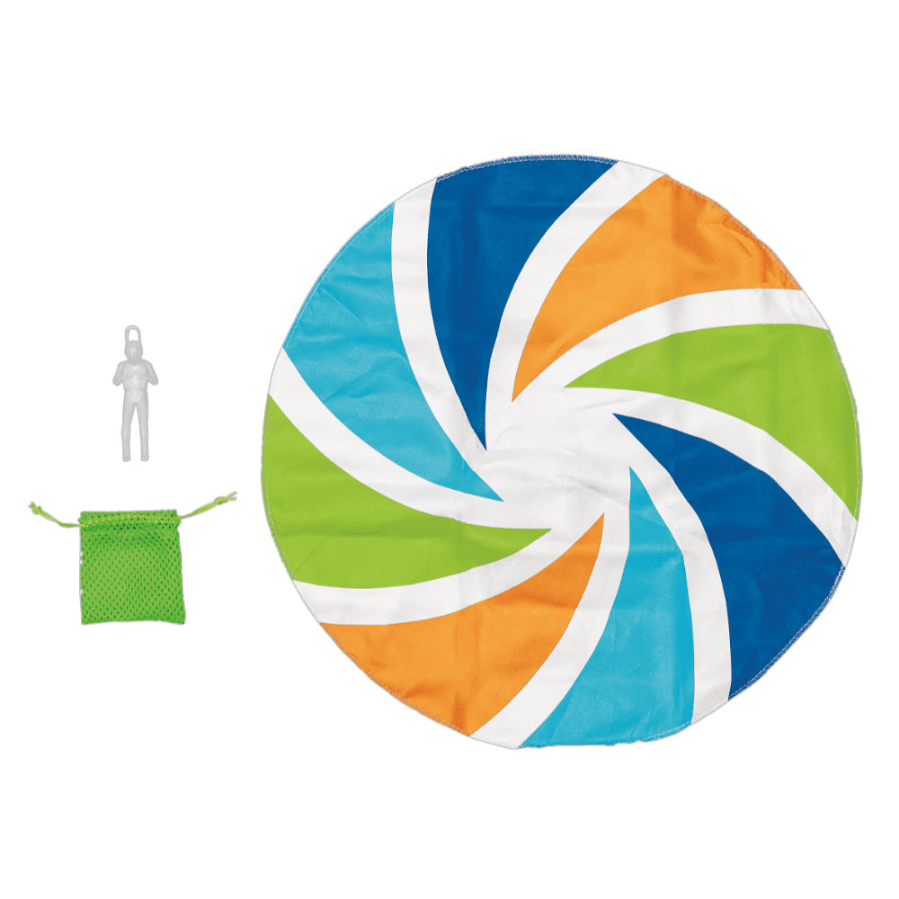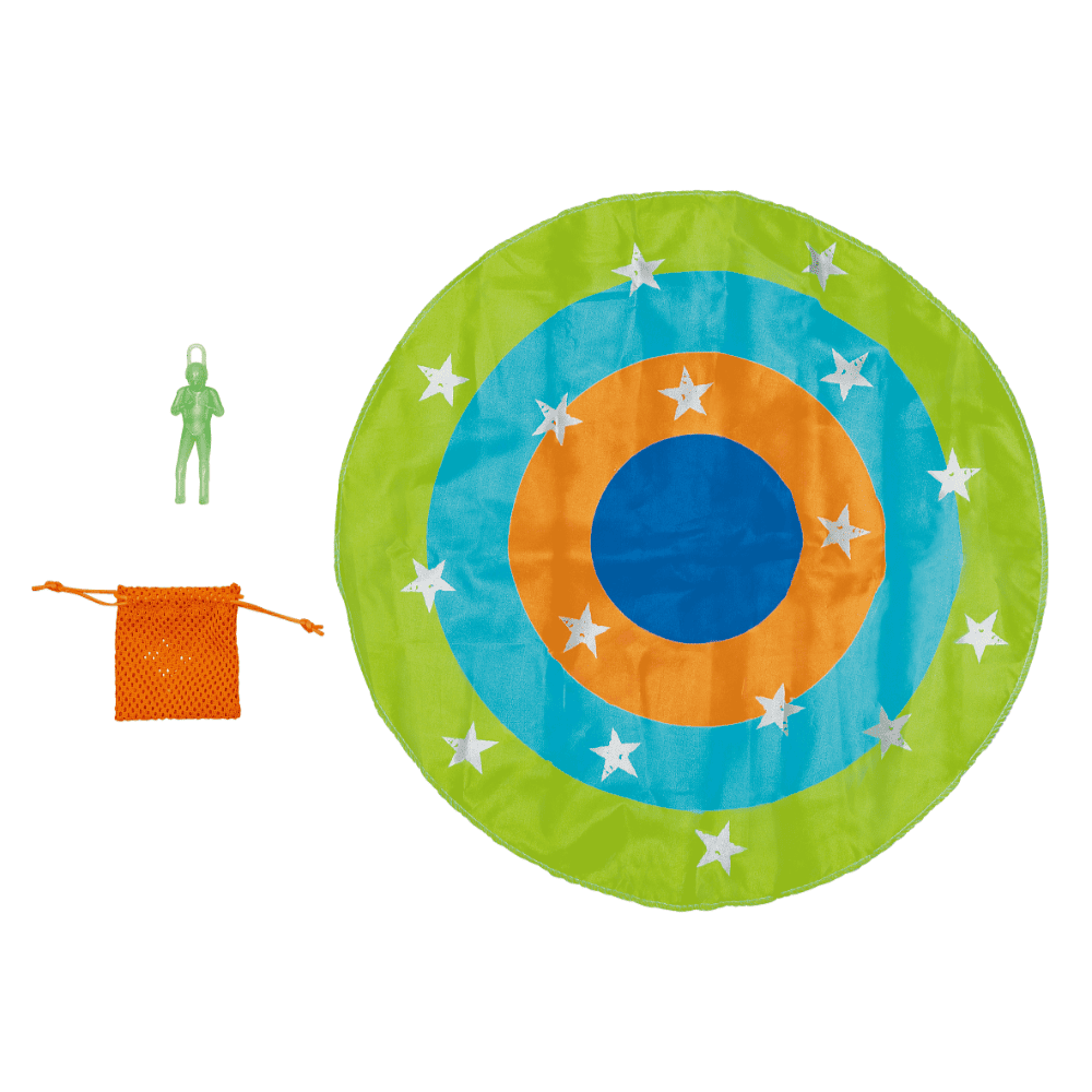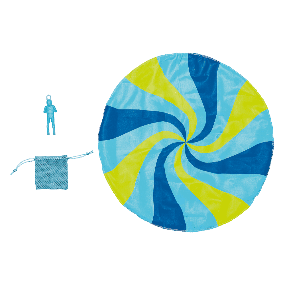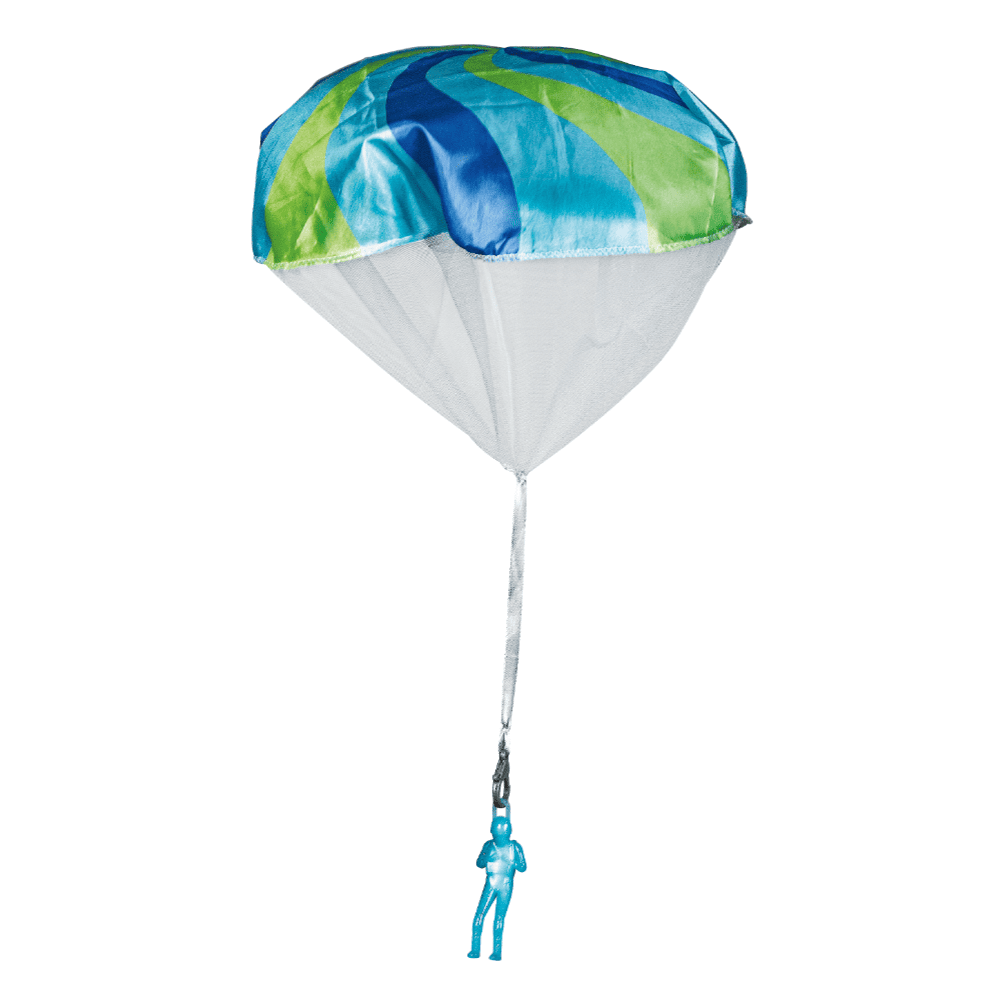Los pequeños exploradores pueden dejar que el colorido paracaidista se eleve por los aires y observar cómo flota suavemente hacia el suelo. El gran paraguas se despliega espectacularmente y reduce la velocidad de caída: ¡un experimento lúdico sobre la resistencia del aire y la gravedad!
