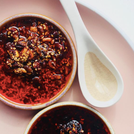 Ingredientes: Aceite de Girasol, *Cacahuetes (23%), *Semillas de Sésamo, Chili (Red Chilli Flakes, Gochugaru, chile en polvo, chile de árbol), ajo, agave, *frijoles negros fermentados (soja), *tamari en polvo (soja), sal marina, *aceite de sésamo.