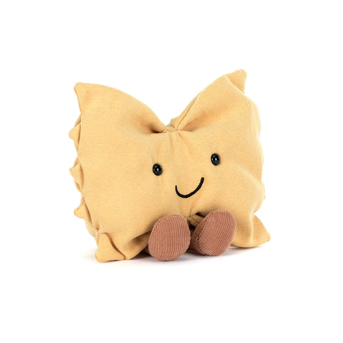 Esta elegante pasta parece una pajarita, con su suave y cosido pelaje dorado. Con ojos brillantes, una gran sonrisa y botas de pana muy chulas, ¡este travieso amigo siempre está en problemas!