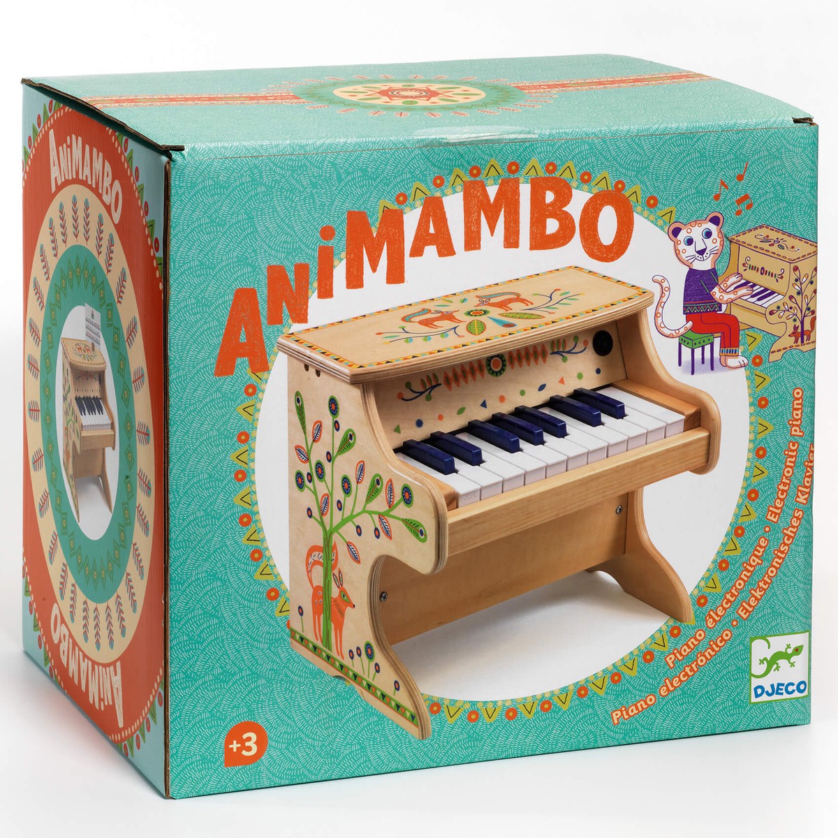 Un magnífico piano electrónico de madera ilustrado por Magali Attiogbé para niños. Con las partituras, se pueden tocar 4 canciones populares o componer otras piezas, según se desee. Cada nota se reemplaza con un signo de color impreso delante de las teclas del piano: basta con seguir los mismos signos de color en la partitura para tocar y descubrir la música. Funciona con 4 pilas AA (no incluidas).