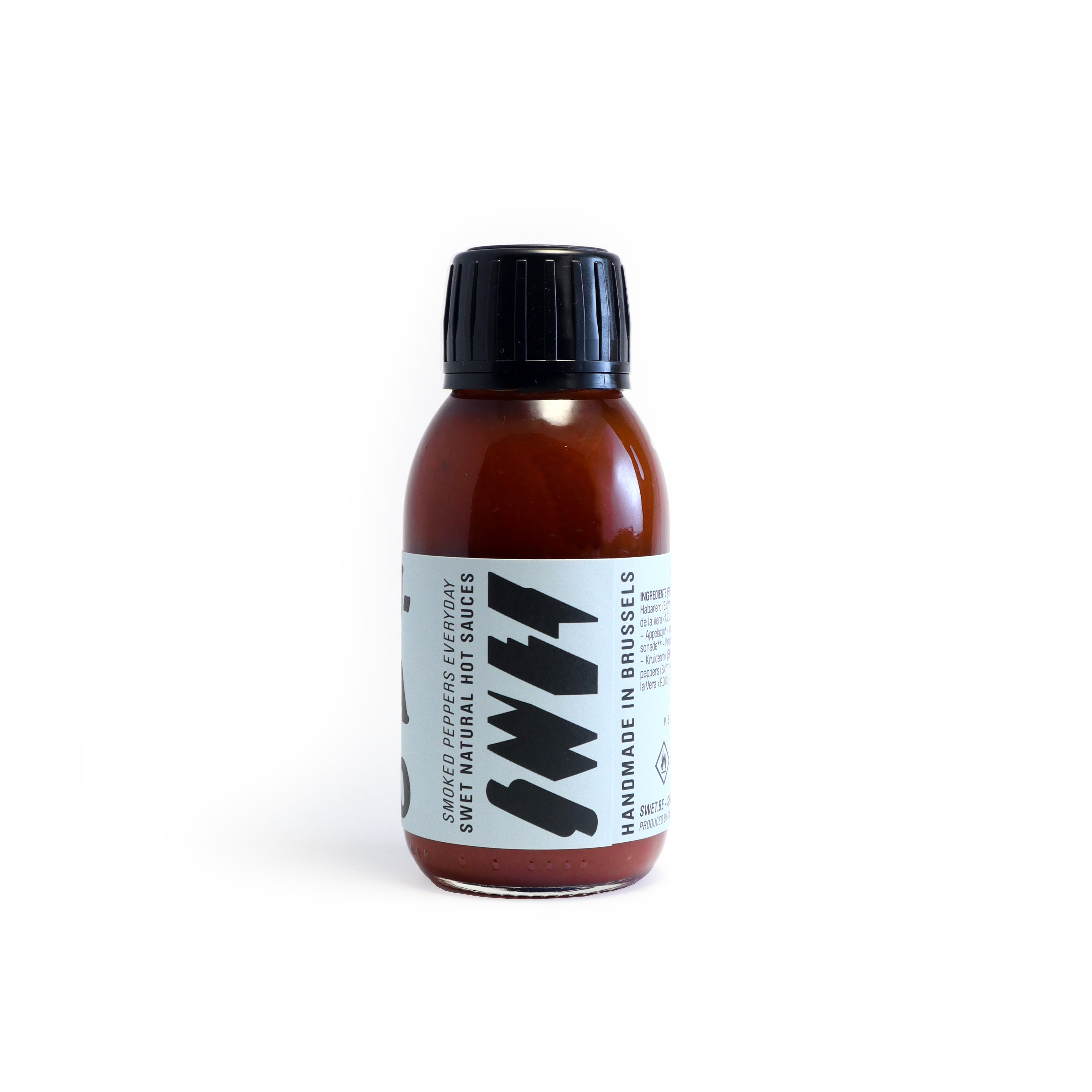 cebollas rojas belgas caramelizadas, pimientos habaneros de Bruselas sin químicos, vinagre de sidra orgánico, ajo fresco y pimienta negra de Sri Lanka.