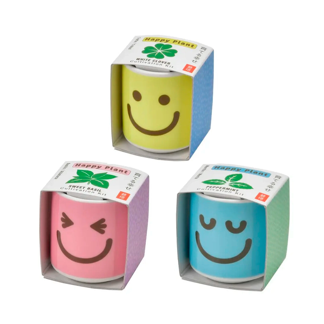 Pon tu felicidad en marcha con Happy Plants. Las preciosas macetas de cerámica tienen cada una una expresión de felicidad con una planta que coincide con su estado de ánimo. Estos pequeños vienen completos con un medio de cultivo de fibra de coco, instrucciones y paquetes de semillas.