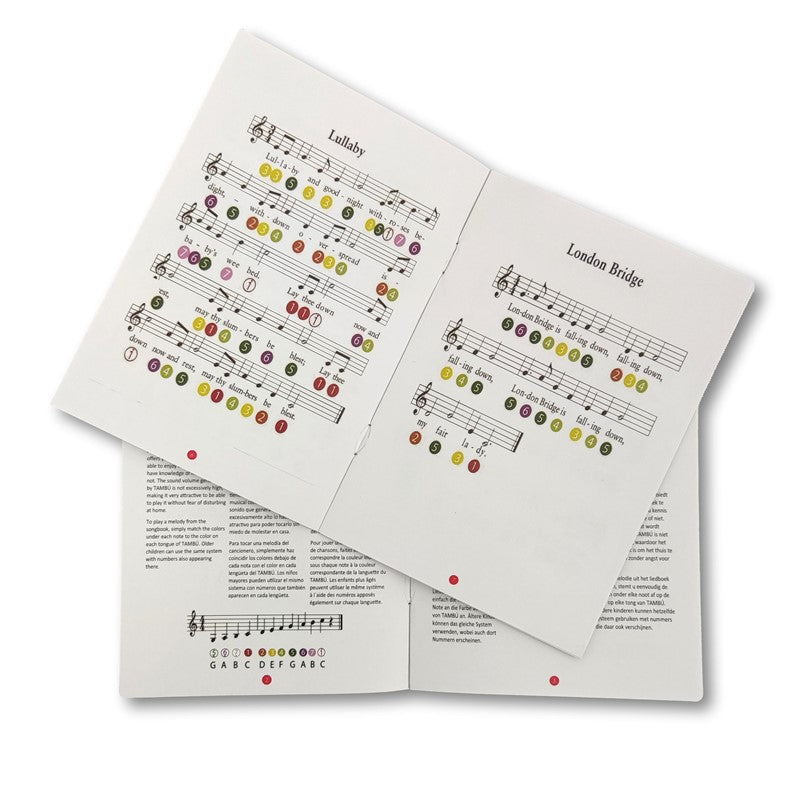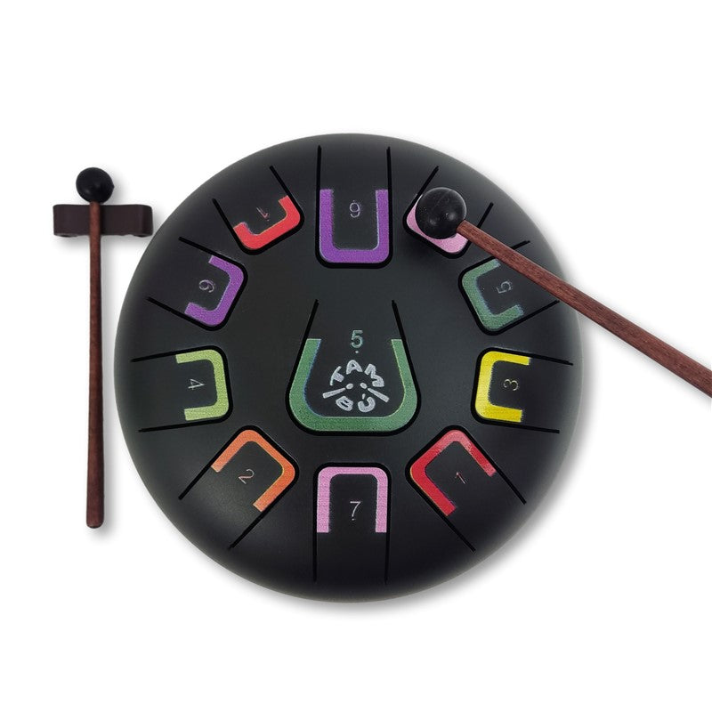 Tambú es un instrumento de sonido celestial que por su forma podría ser un híbrido entre un xilófono y un tambor. Tiene 11 notas musicales y se puede tocar con los dedos directamente, baquetas o con anillos. Las notas se distingues por colores y números. Viene con funda y gamuza para limpiarlo, también un librito con partituras. Gustara a niños y mayores.