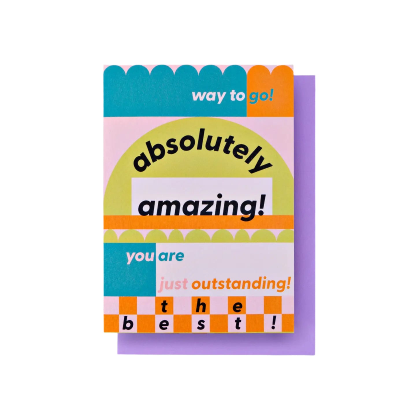 Es una tarjeta A6, impresa en el Reino Unido en papel con certificación FSC de 300 g/m² con textura martillada que realza sus vibrantes colores. Incluye un sobre lila y está empaquetada en una bolsa biodegradable.