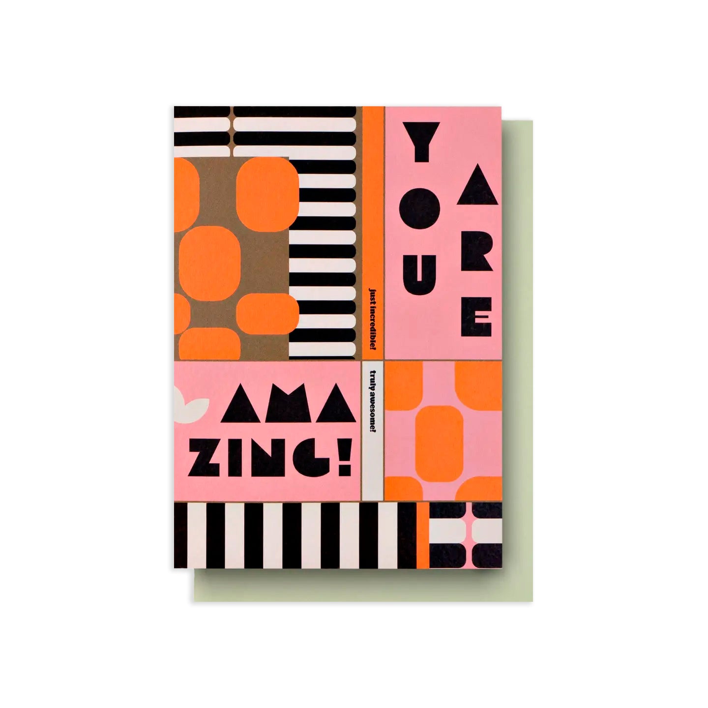 Es una tarjeta A6, impresa en el Reino Unido en papel con certificación FSC de 300 g/m² con textura martillada que realza sus vibrantes colores. Incluye un sobre verde pálido y está empaquetada en una bolsa biodegradable.