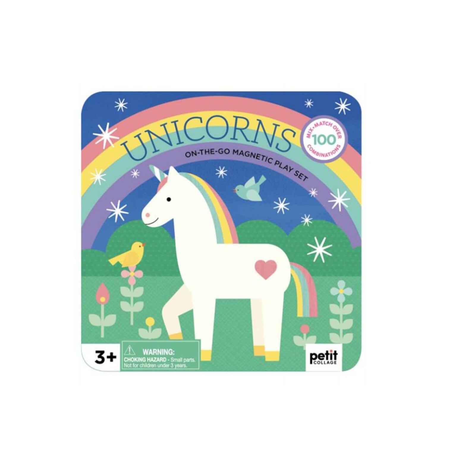 Caja metálica con 25 piezas magnéticas que pueden mezclarse entre sí para crear multiples Unicornios. Cada caja dispone de 2 escenas impresas en su interior. Ideal para viajes.