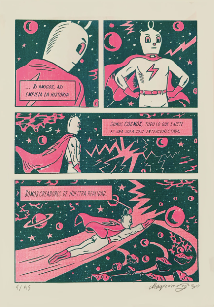 Rissography is a printing technique that enhances the warmth of the prints. In the risographical prints, each copy is different and we look for the expressiveness of the register failure.